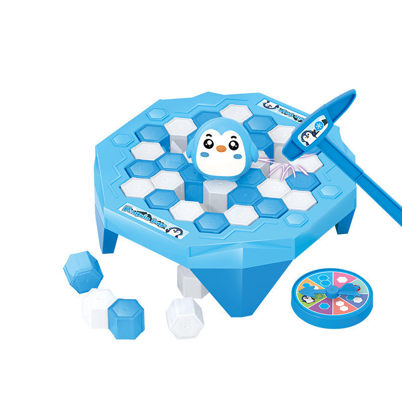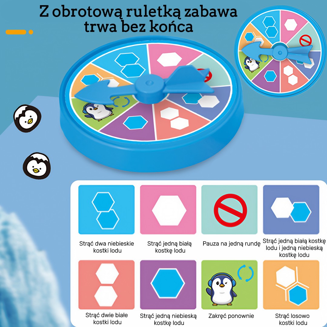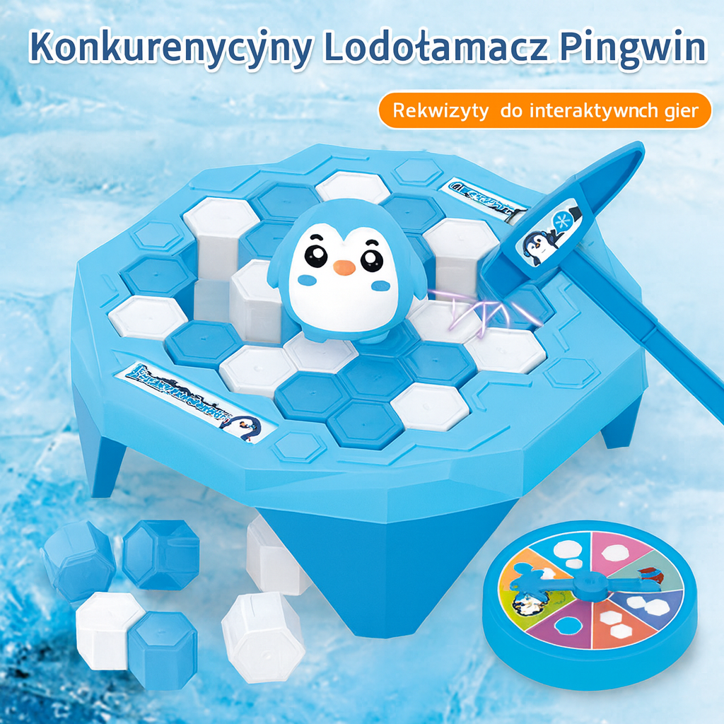 Pingwin na Lodzie to pełna emocji gra rodzinna, która rozwija zręczność, koncentrację i cierpliwość. Zadaniem graczy jest ostrożne wybijanie kostek lodu młotkiem tak, by nie strącić pingwinka stojącego na środku planszy.